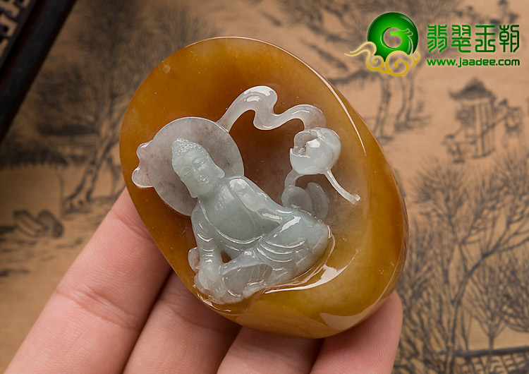 首页 >> 糯冰种红黄翡缅甸翡翠A货释迦牟尼佛挂件