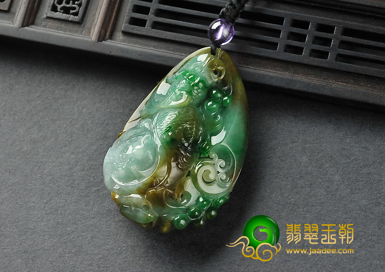 首页 >> 糯冰种黄加绿缅甸翡翠A货英明神武挂件