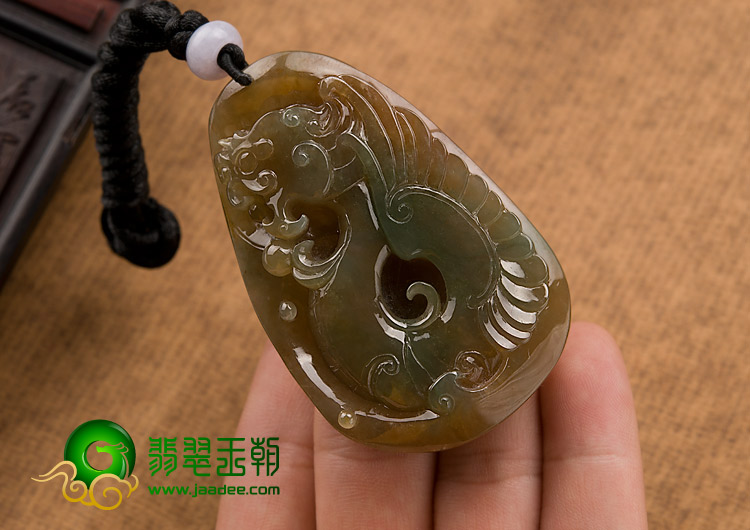 首页 >> 冰种褐黄翡缅甸翡翠A货龙凤呈祥挂件