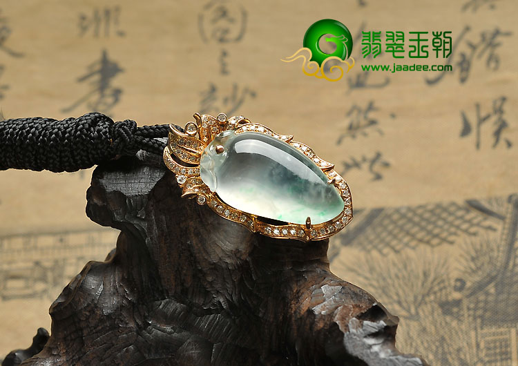 冰玻种飘翠缅甸翡翠A货镶玫瑰金胸坠(真钻)