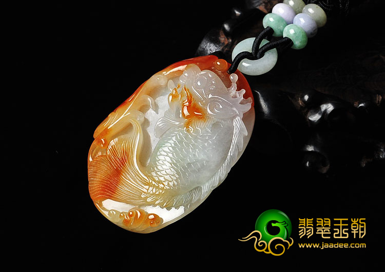 糯冰种红黄翡缅甸翡翠A货龙头鱼挂件
