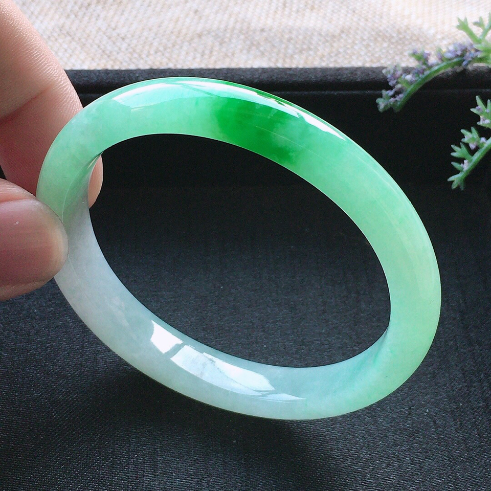 糯冰种飘翠A货翡翠手镯(53.1*44.8)