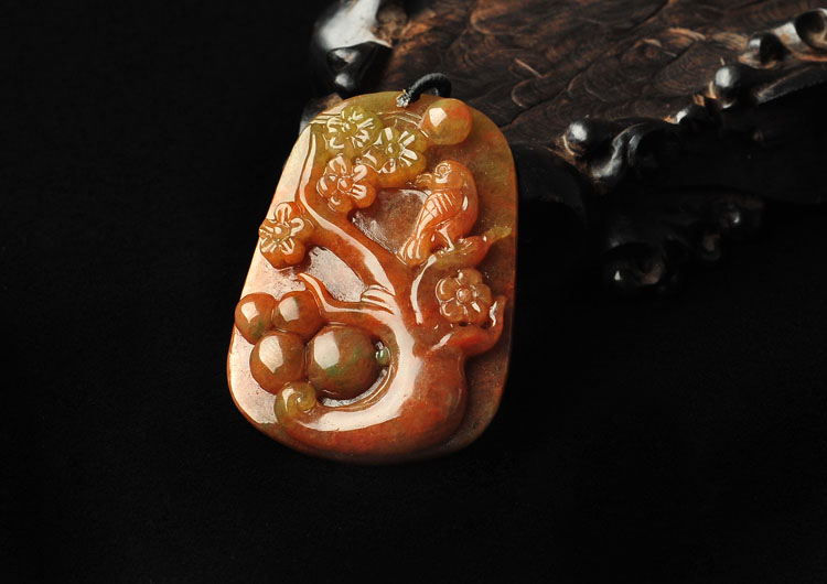 首页 >> 糯冰种红加绿缅甸翡翠A货喜上眉梢挂件
