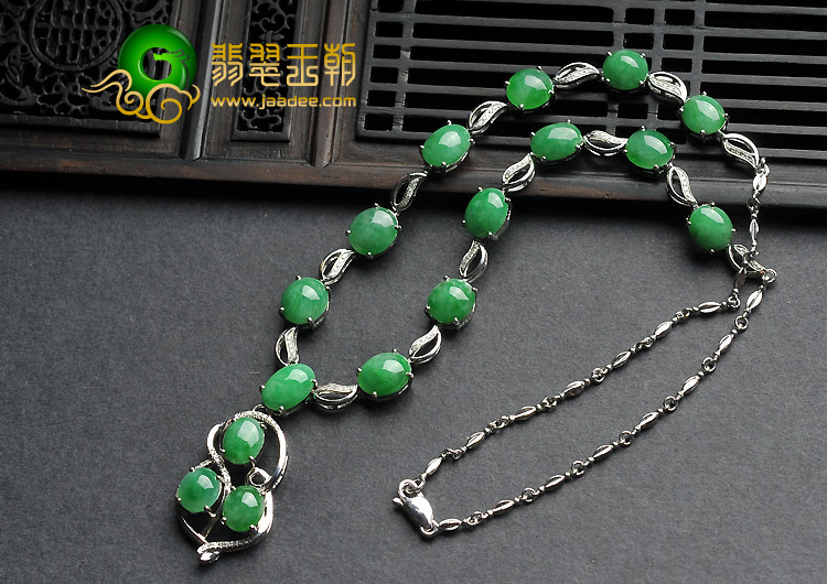 首页 >> 冰种苹果绿满绿缅甸翡翠A货镶9k白金项链(真钻)