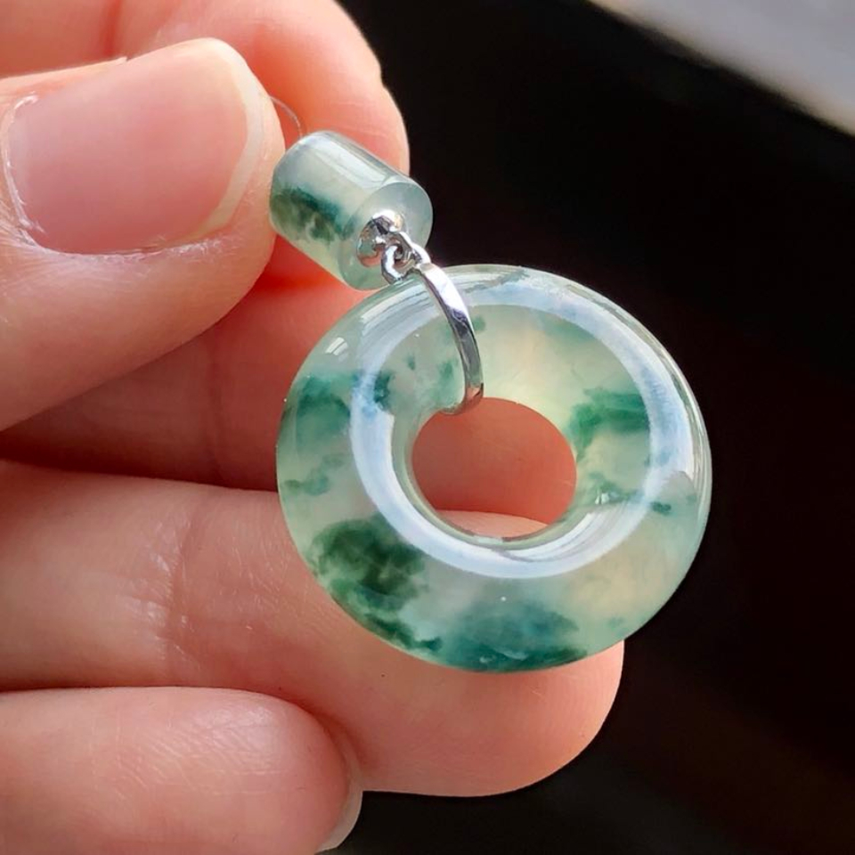 首页 >> 糯冰种飘花翡翠平安扣胸坠