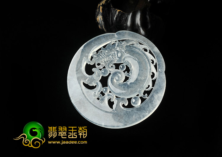 冰种缅甸翡翠A货圆龙牌挂件