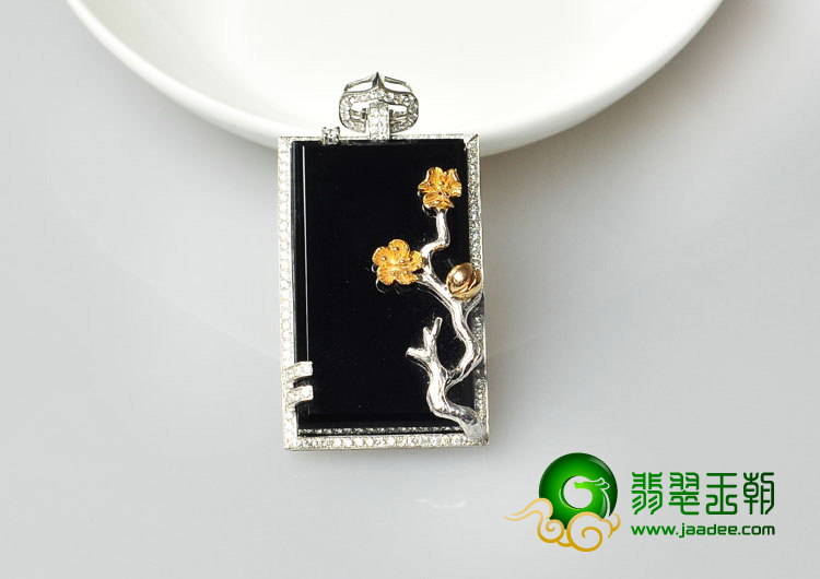 首页 >> 冰种墨翠缅甸翡翠A货镶白金玫瑰金方牌胸坠(真钻)