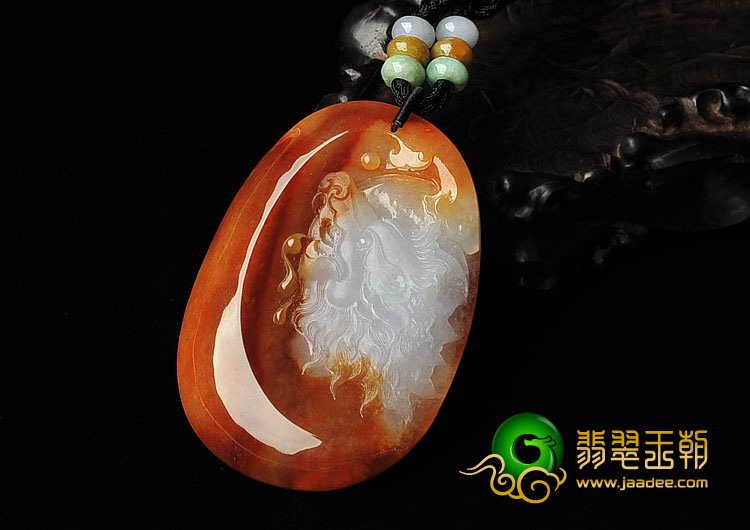 首页 >> 糯冰种红黄翡缅甸翡翠A货狼头挂件