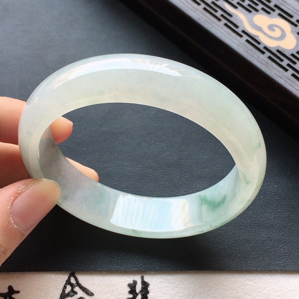 首页 >> 翡翠细糯种飘花正圈手镯52mm