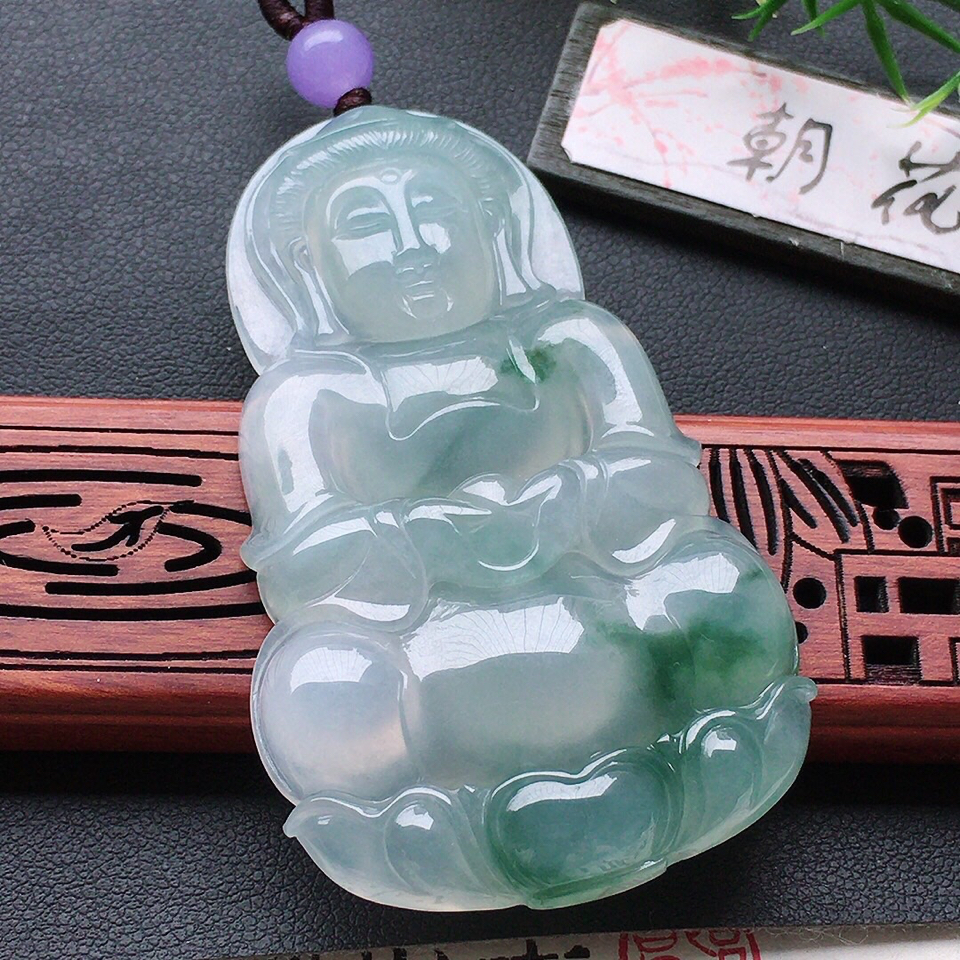 首页 >> 翡翠糯冰种飘花观音吊坠(顶珠为装饰珠)
