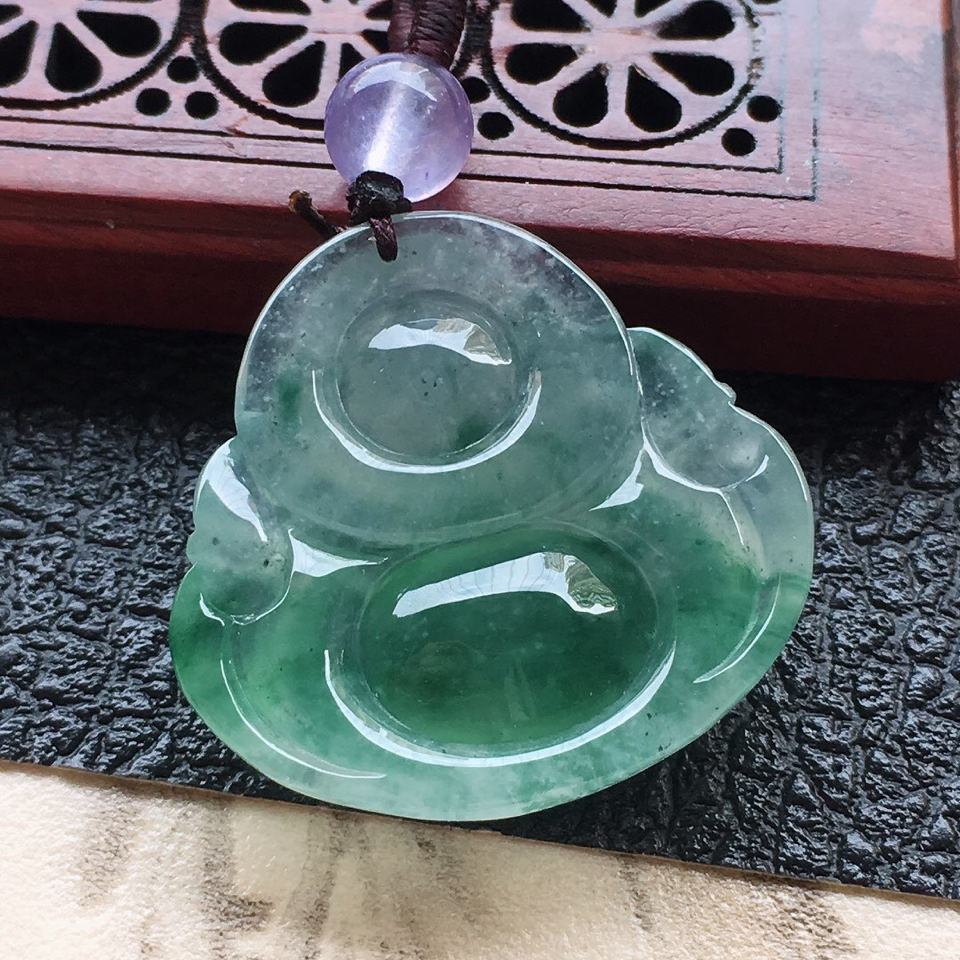 翡翠糯冰种飘花佛公吊坠(顶珠为装饰珠)
