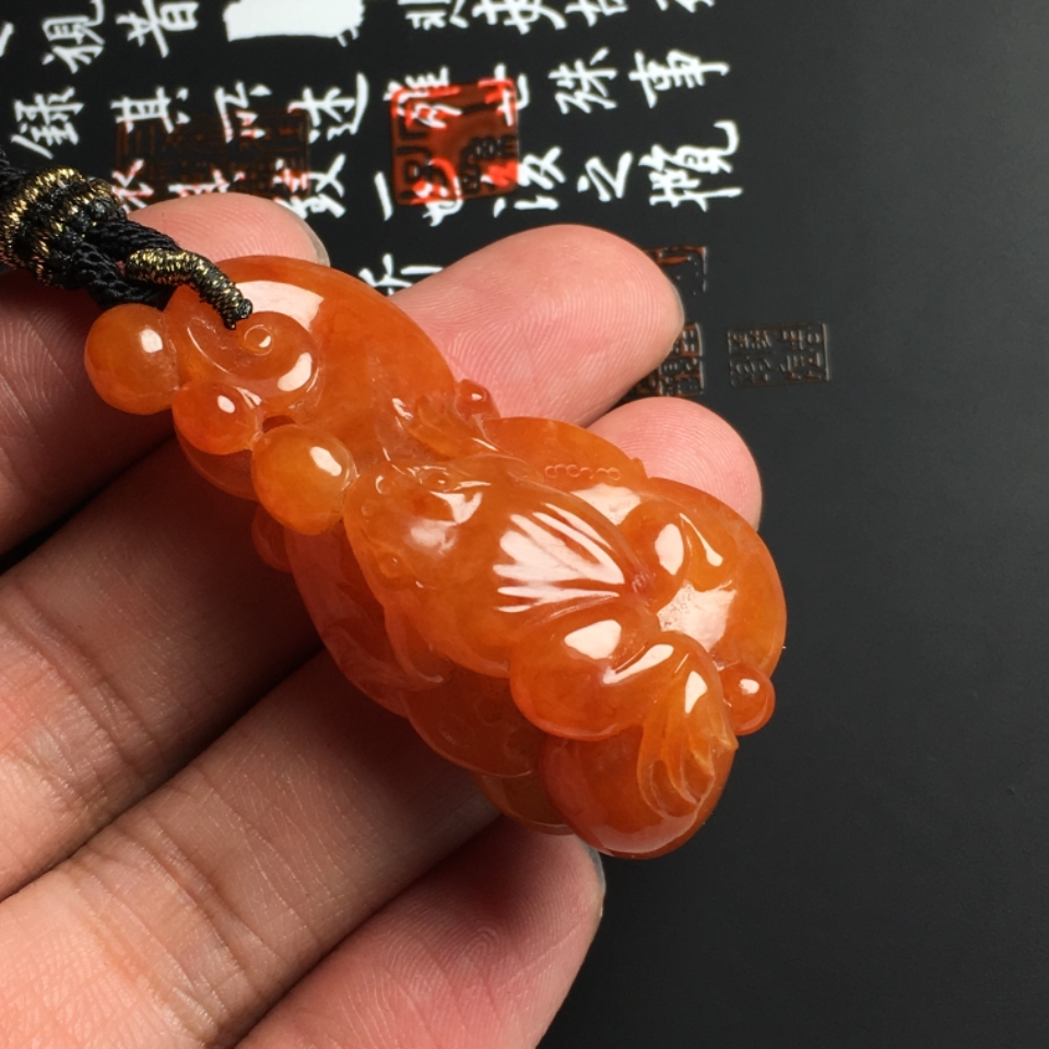 首页 >> 糯冰种红黄翡呱呱来财挂件翡翠