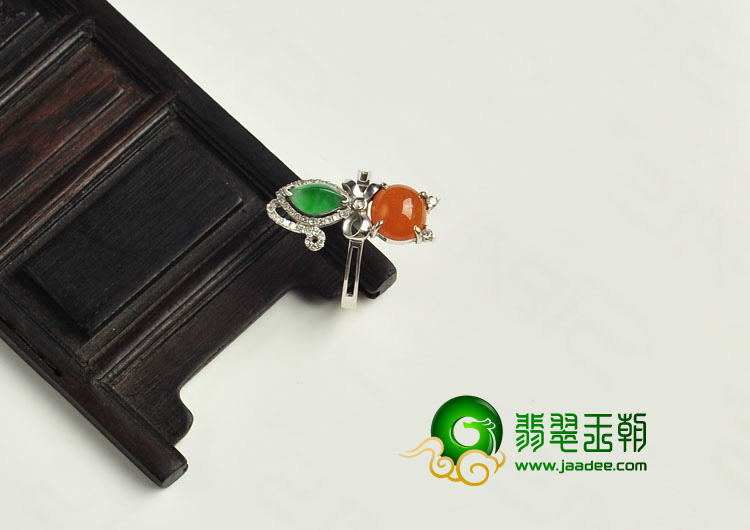 首页 >> 冰种红翡(阳绿)缅甸翡翠A货镶白金小猫戒指(真钻)