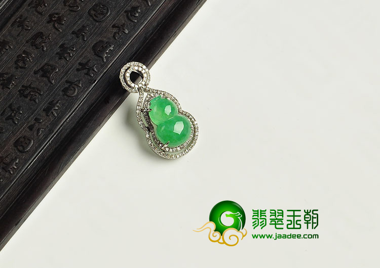 冰种苹果绿缅甸翡翠A货镶白金葫芦胸坠(真钻)