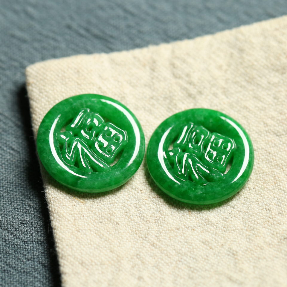 细糯种满绿福圆牌一对