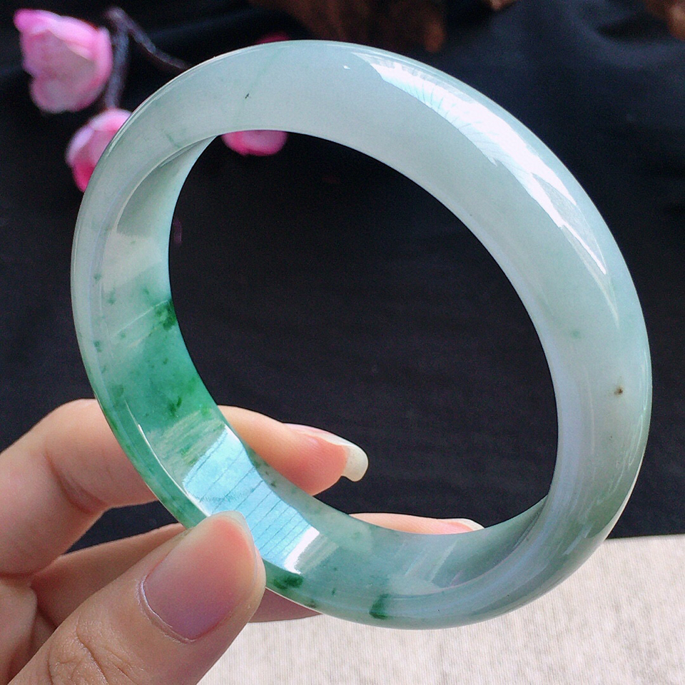 首页 >> 翡翠糯冰种飘花正圈手镯60mm