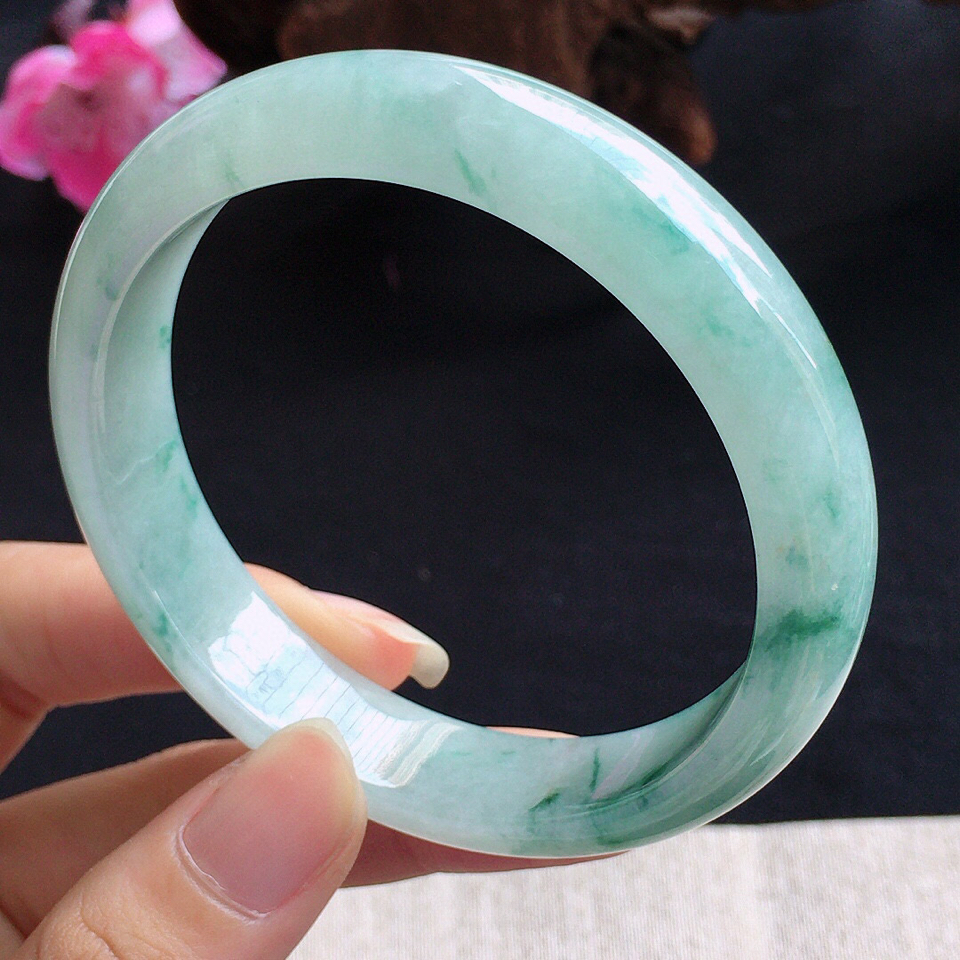 首页 >> 翡翠糯冰种飘花正圈手镯56mm