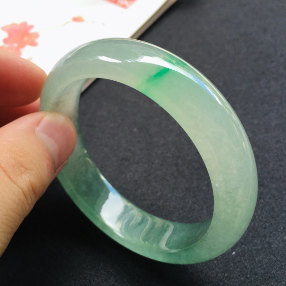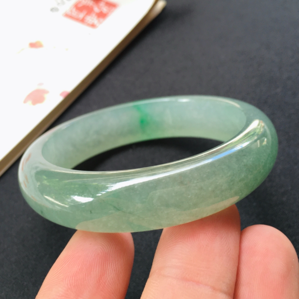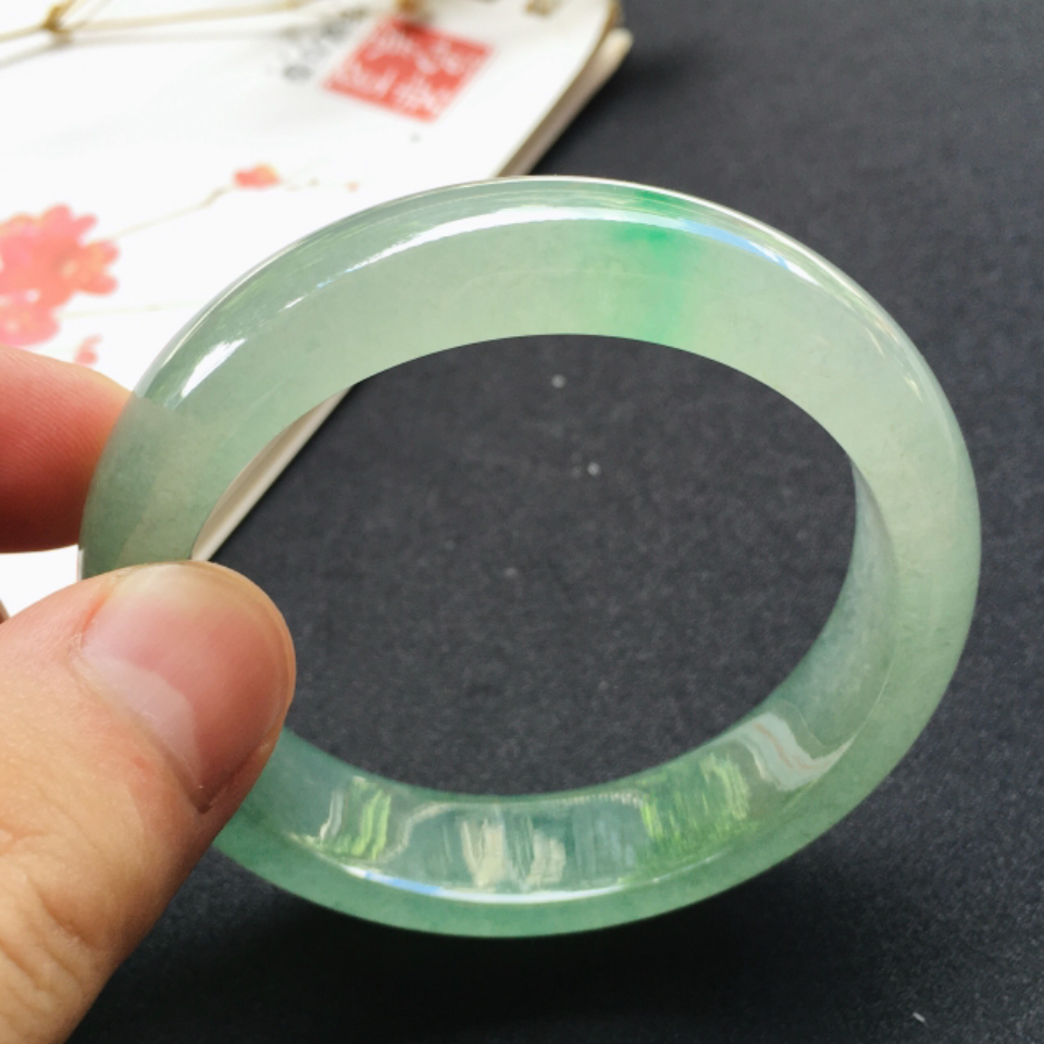 冰种飘阳绿正圈翡翠手镯【51.5mm】