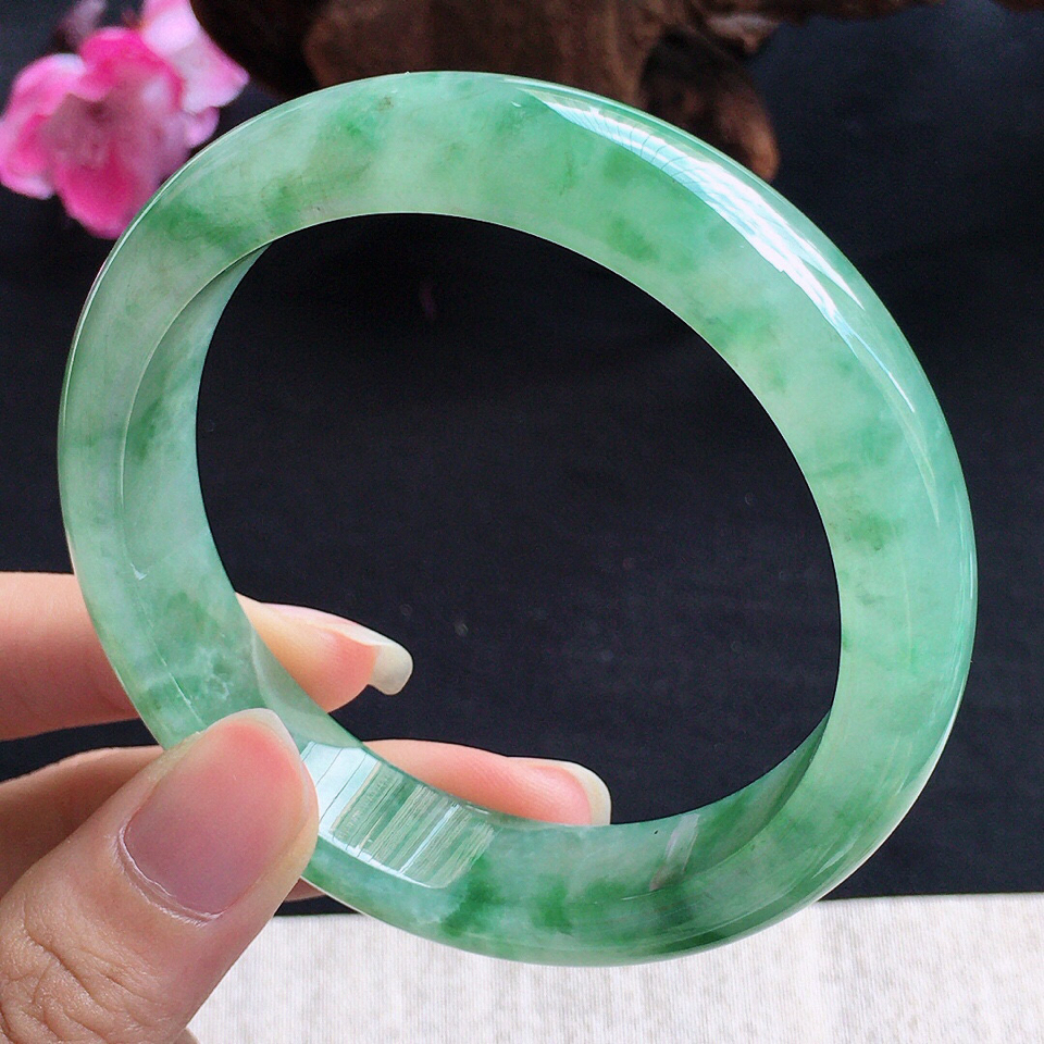 首页 >> 翡翠糯冰种飘花正圈手镯57mm