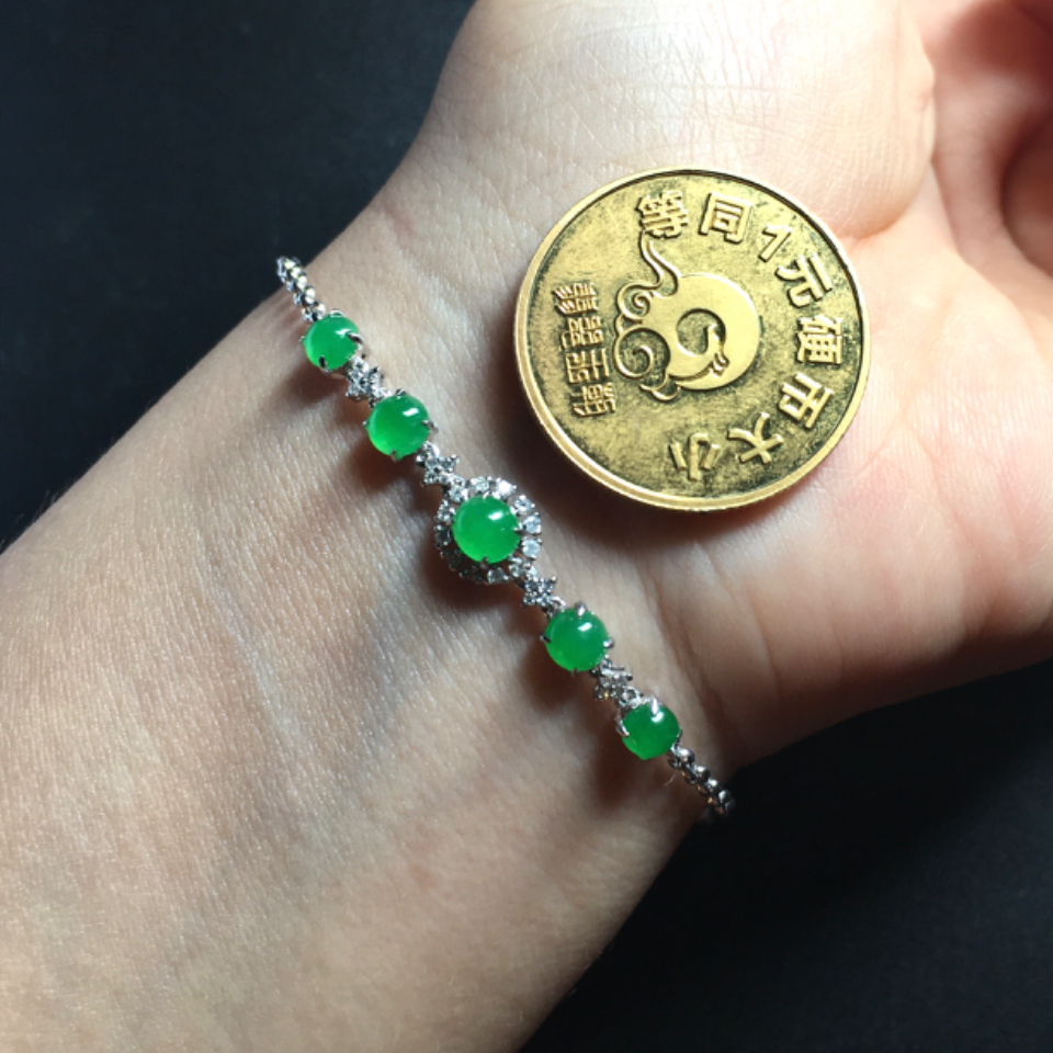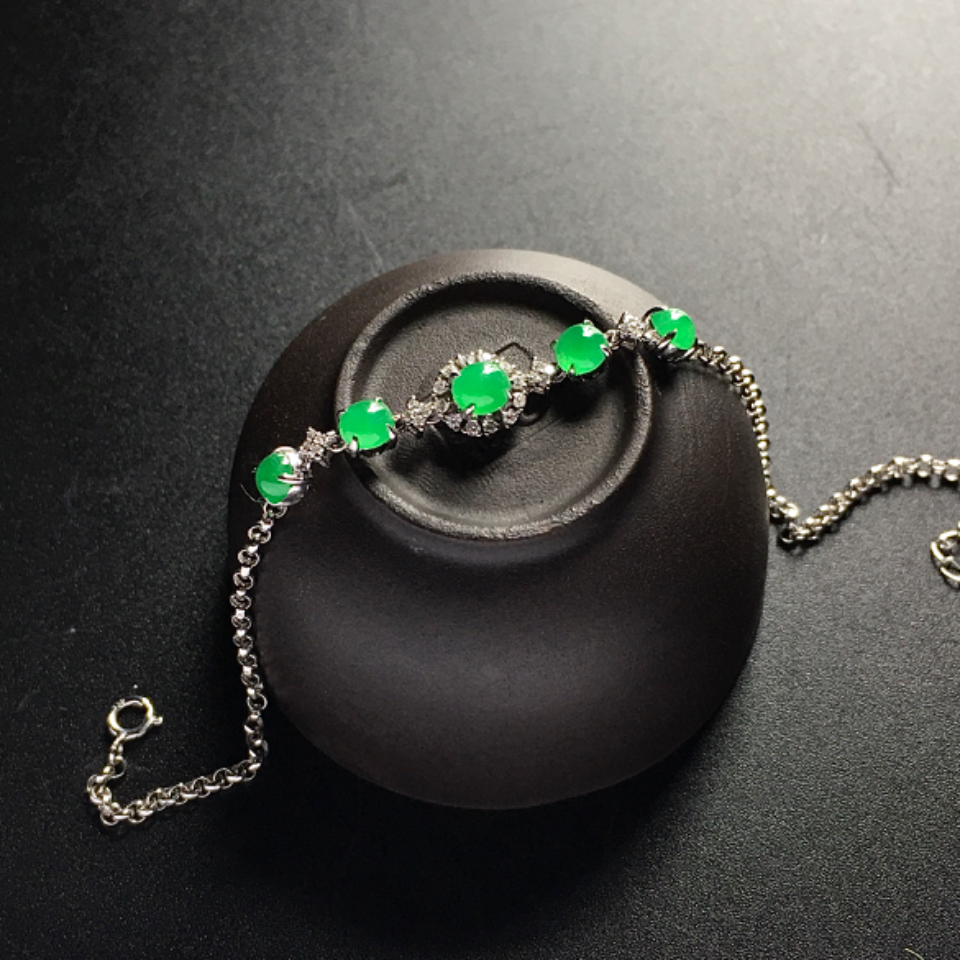 首页 >> 冰种苹果绿镶白金钻石手链翡翠