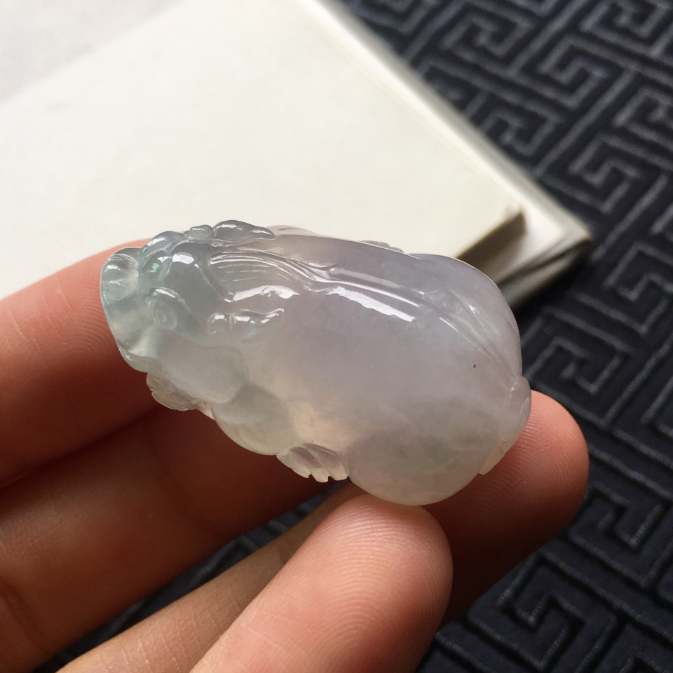 【【描述】】:玉质冰润冰透,起光起胶,饱满大气,雕工精湛细致,种非常好,佩戴招财保平安~