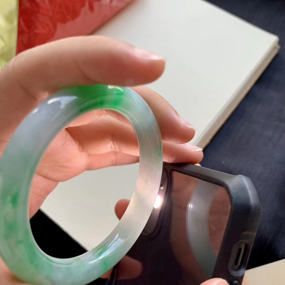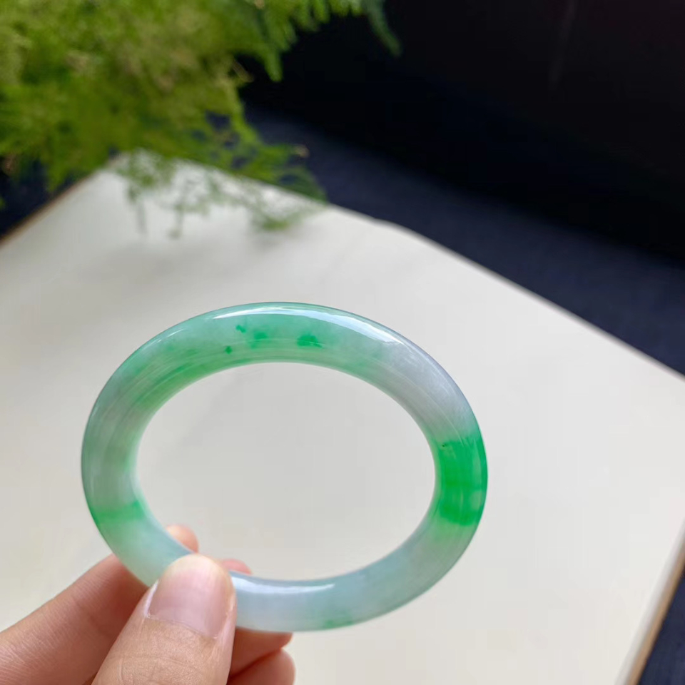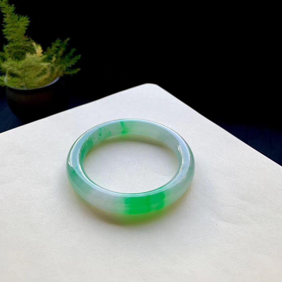 首页 >> 50.5mm糯冰飘绿圆条手镯翡翠