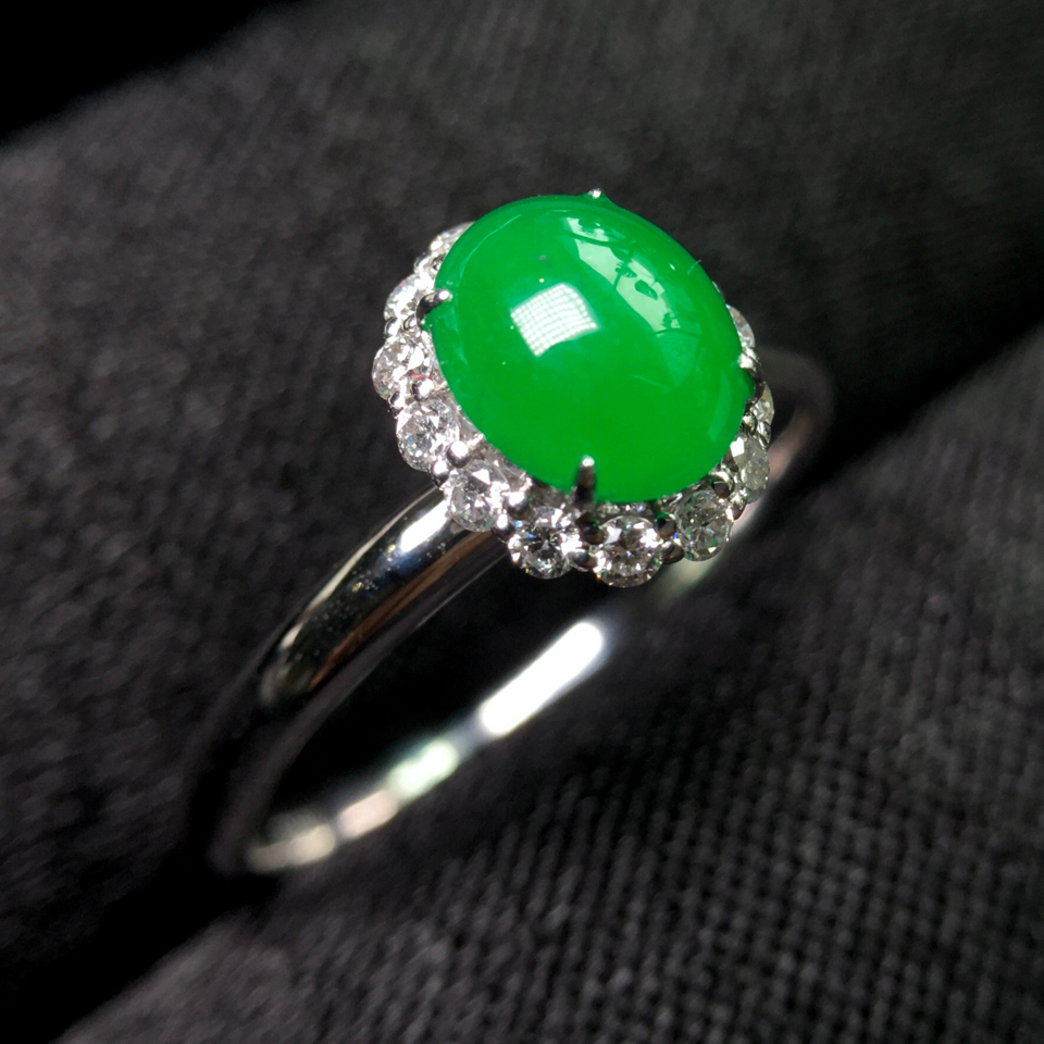 首页 >> 翡翠冰种满绿18k金伴钻镶嵌戒指