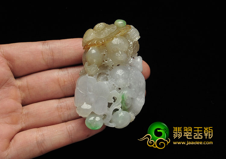 首页 >> 糯冰种三彩缅甸翡翠A货代代封侯挂件