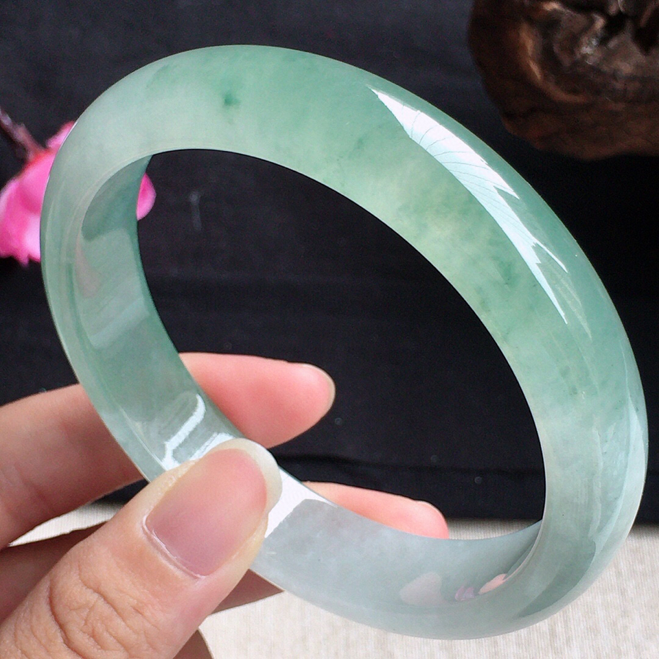 首页 >> 翡翠糯冰种飘花正圈手镯61mm