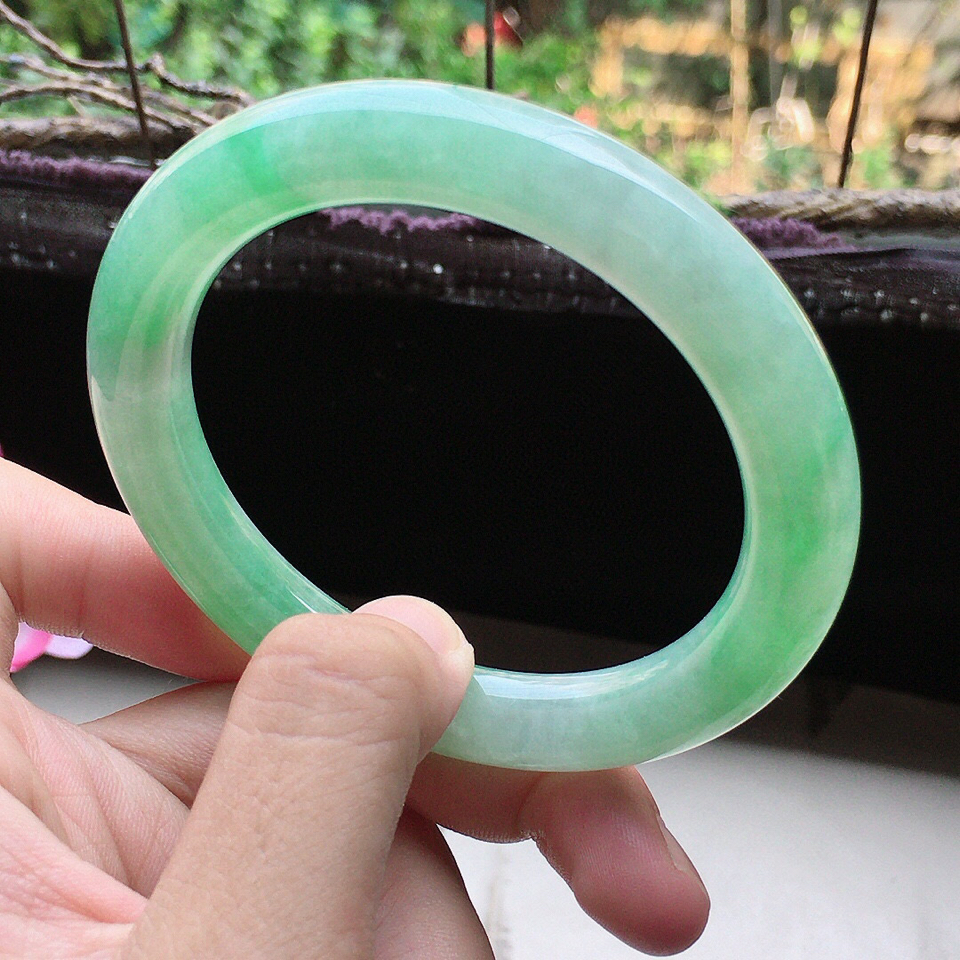 首页 >> 翡翠细糯种带绿圆条手镯54mm
