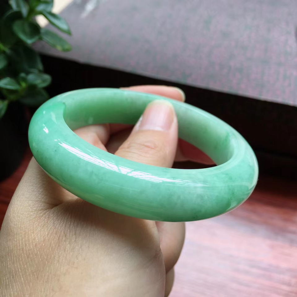 【超值推荐】51圈口果绿宽边手镯