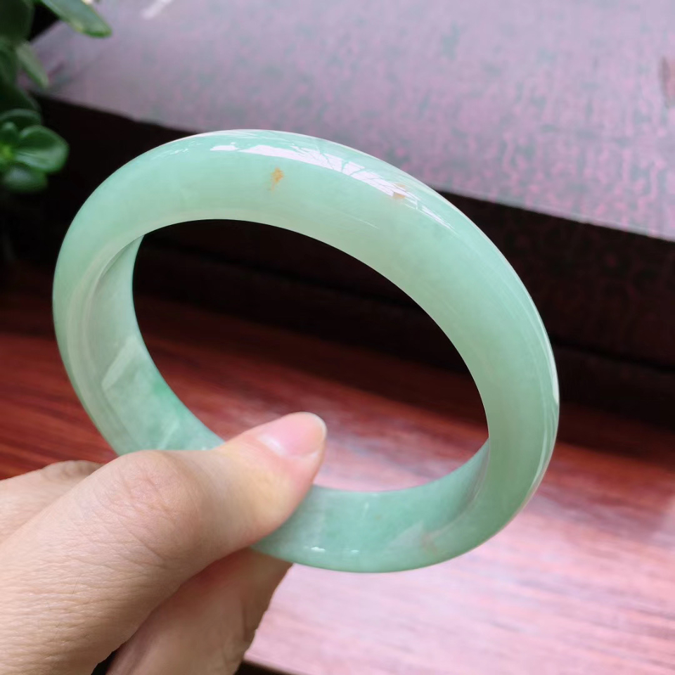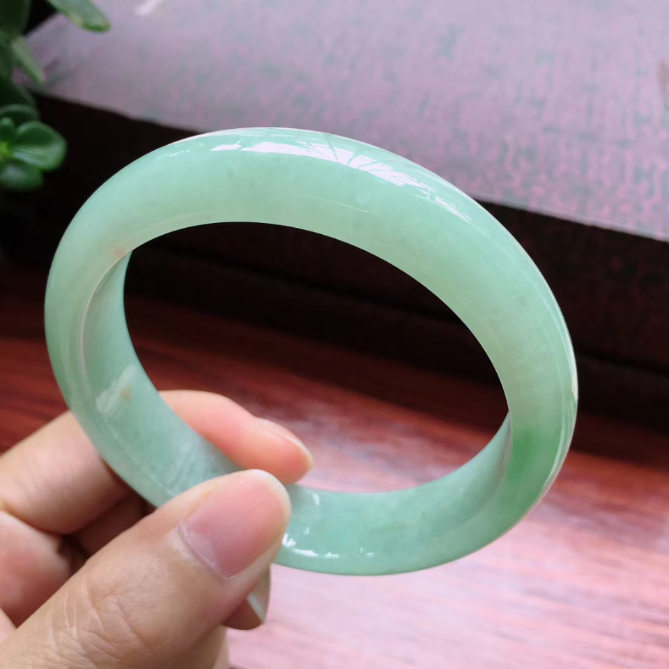 【超值推荐】57圈口冰润浅绿宽边手镯