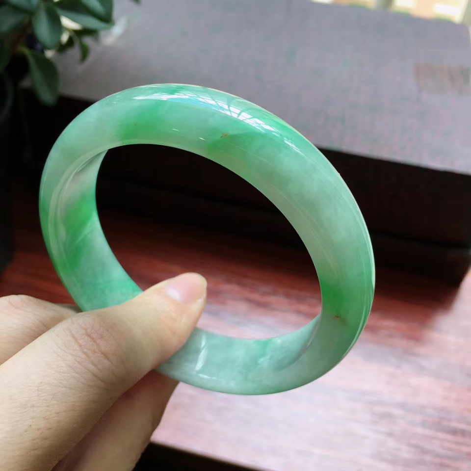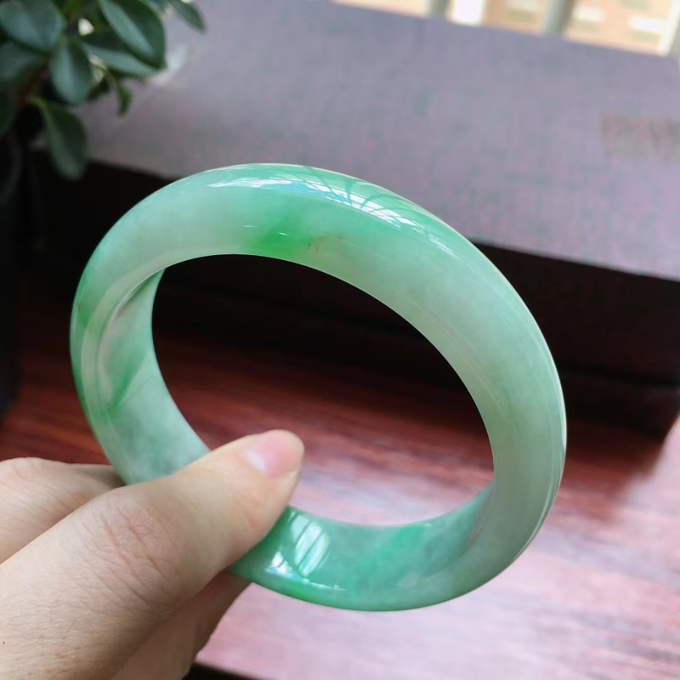 【超值推荐】56圈口飘阳绿宽边手镯