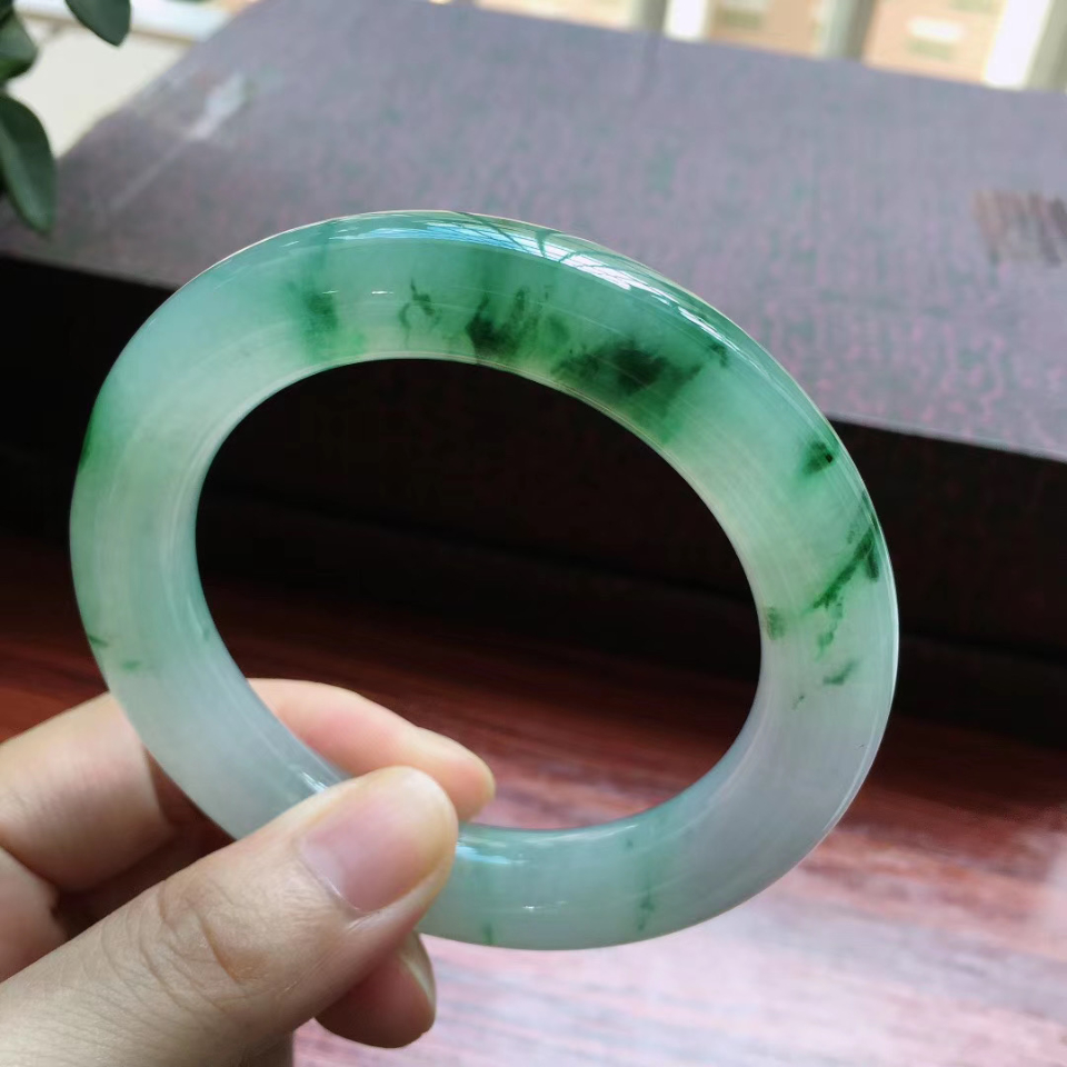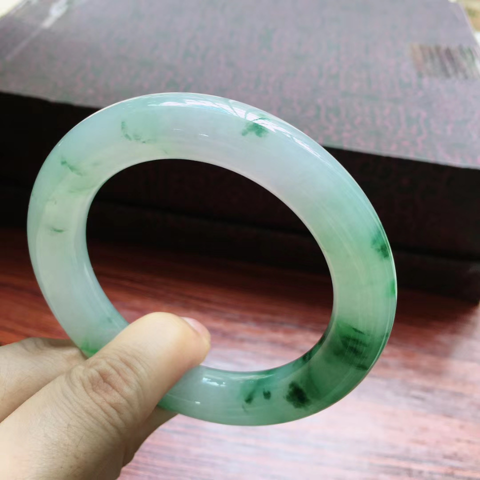 56圈口冰润飘花圆条手镯