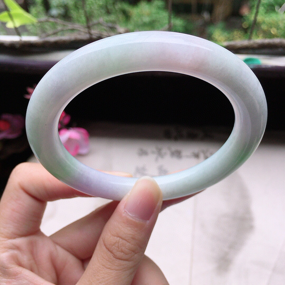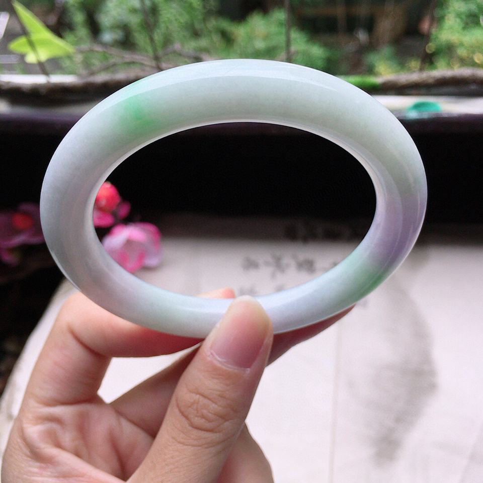首页 >> (超值推荐)翡翠细糯种春带彩圆条手镯58mm