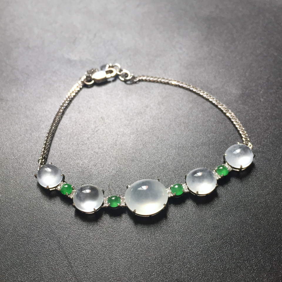 首页 >> (超值推荐)镶白金钻石冰种翡翠手链