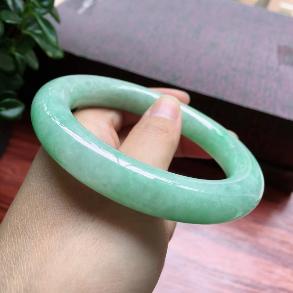 首页 >> 58圈口糯冰浅绿圆条手镯