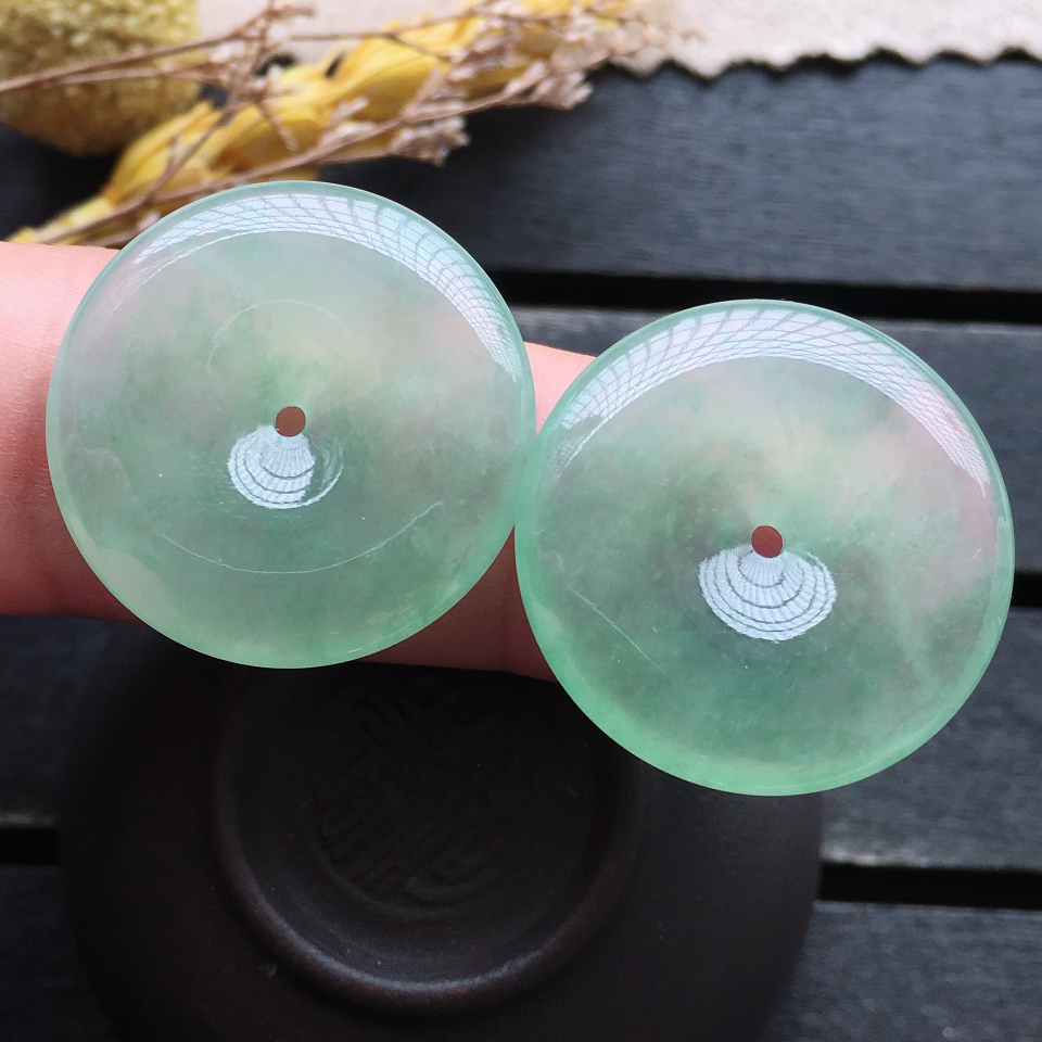 【描述】:自然光实拍,缅甸a货翡翠,平安扣挂件,种好通透,水润玉质细腻,雕刻精细,饱满品相佳,有孔可直接佩戴。