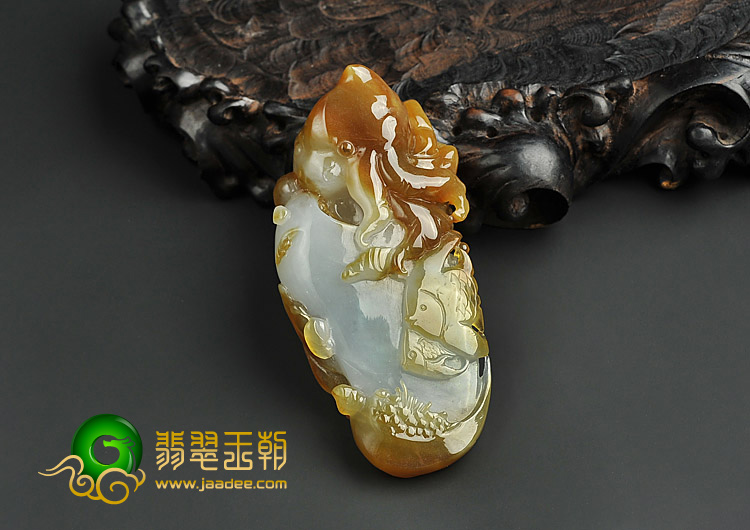 冰种褐黄翡缅甸翡翠A货海底世界挂件