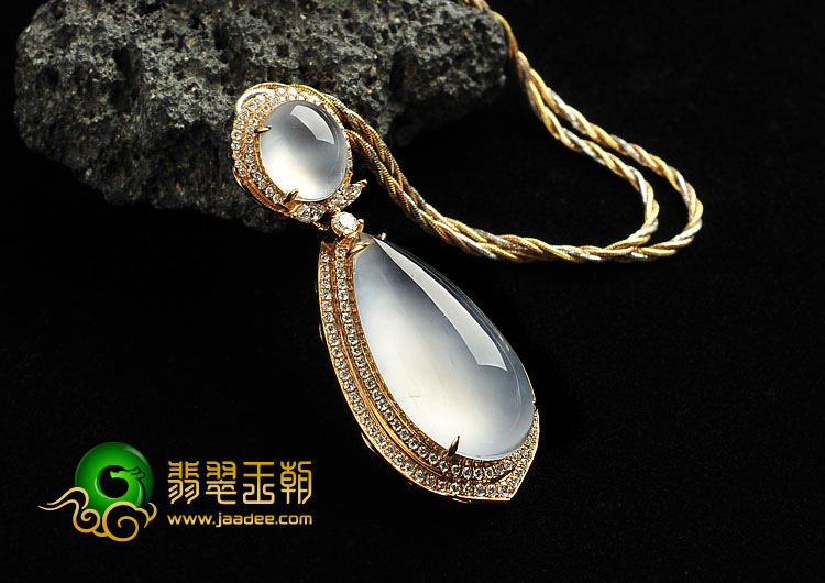 首页 >> 冰玻种无色缅甸翡翠A货镶玫瑰金水滴胸坠(真钻)
