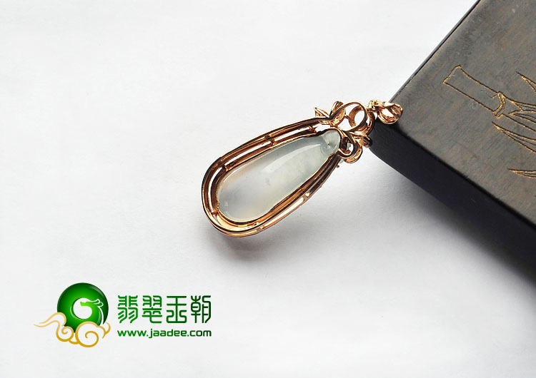 冰种淡晴水缅甸翡翠A货镶玫瑰金福瓜胸坠(真钻)