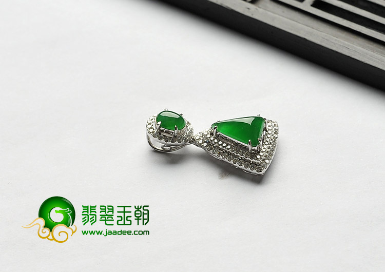 冰种正阳绿缅甸翡翠A货镶白金胸坠(真钻)