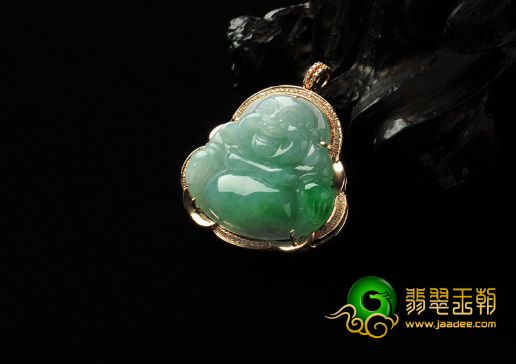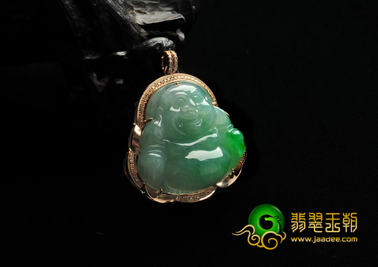 糯冰种飘翠缅甸翡翠A货镶玫瑰金玉佛胸坠(真钻)