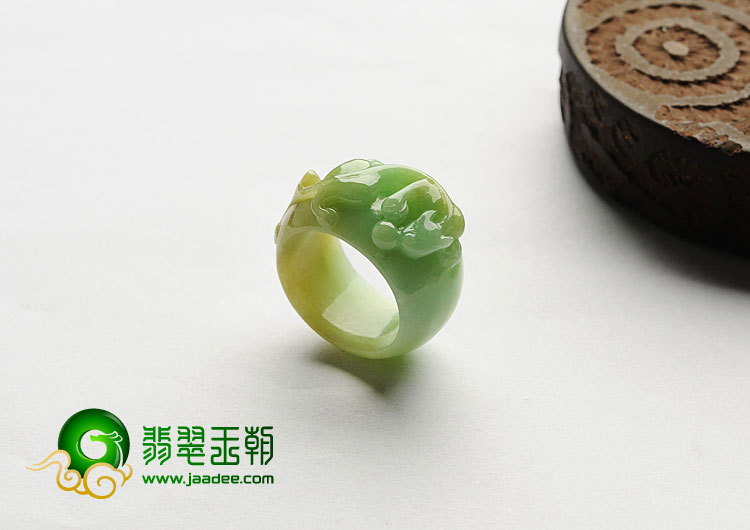 首页 >> 糯冰种黄加绿缅甸翡翠A货螭龙指环