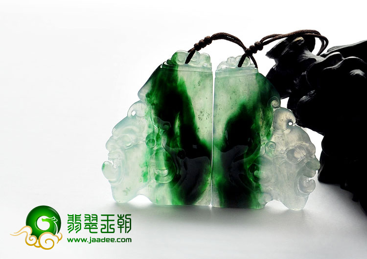 首页 >> 冰种飘花缅甸翡翠A货鬼头挂件(一对)