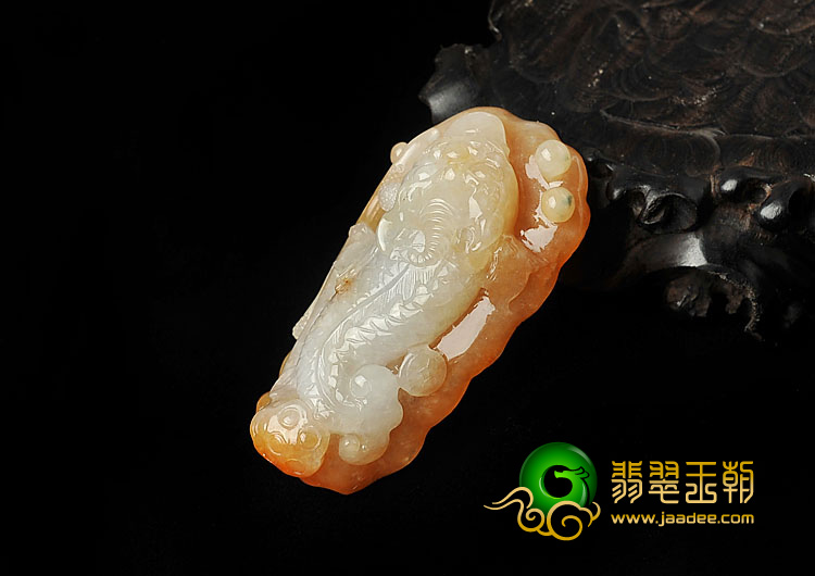 糯冰种红黄翡缅甸翡翠A货龙头鱼挂件