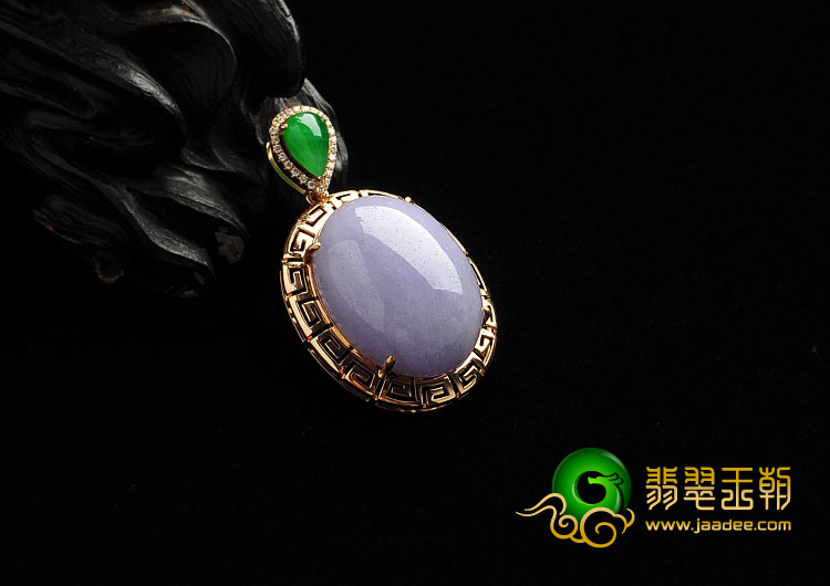首页 >> 糯冰种紫罗兰阳绿缅甸翡翠A货镶玫瑰金胸坠(真钻)