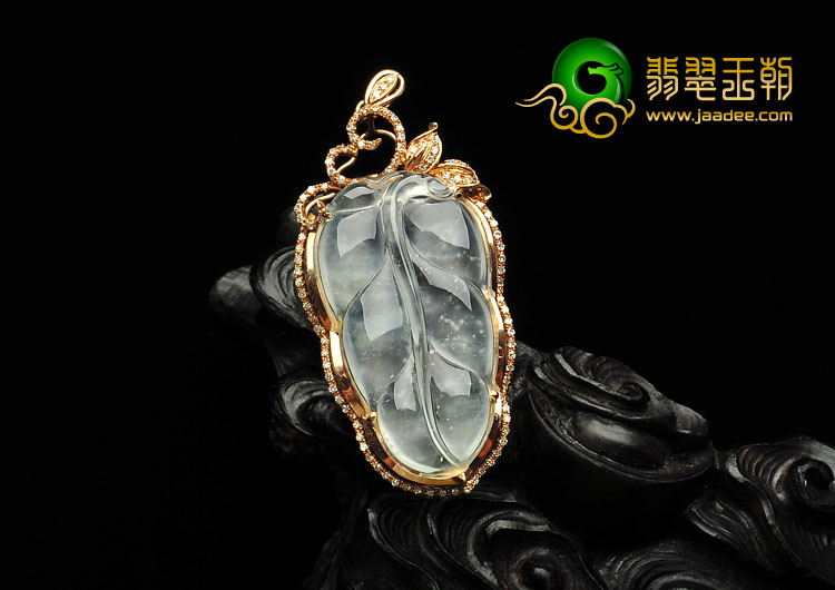 冰玻种无色缅甸翡翠A货镶玫瑰金金枝玉叶胸坠(真钻)