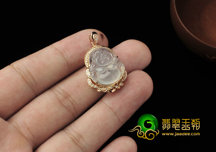 首页 >> (超值推荐)冰种无色缅甸翡翠A货镶玫瑰金玉佛胸坠(真钻)
