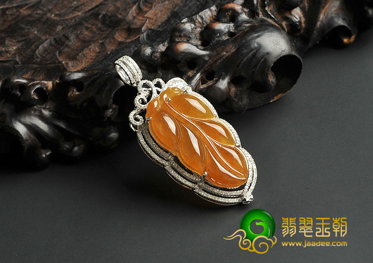 首页 >> (超值推荐)冰种红黄翡缅甸翡翠A货镶白金叶子胸坠(真钻)